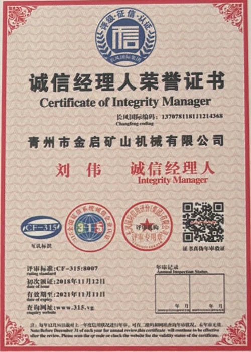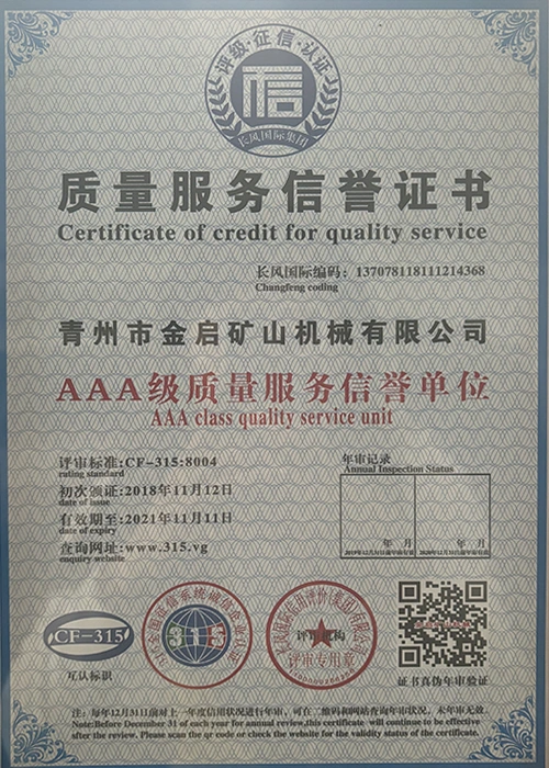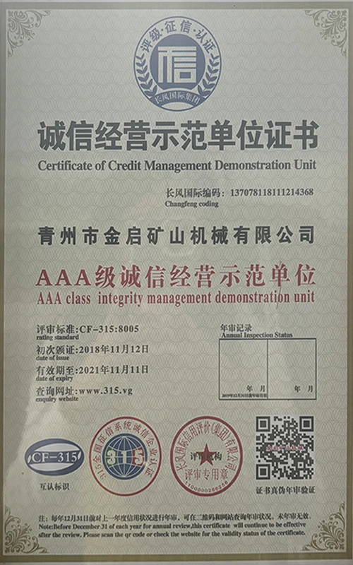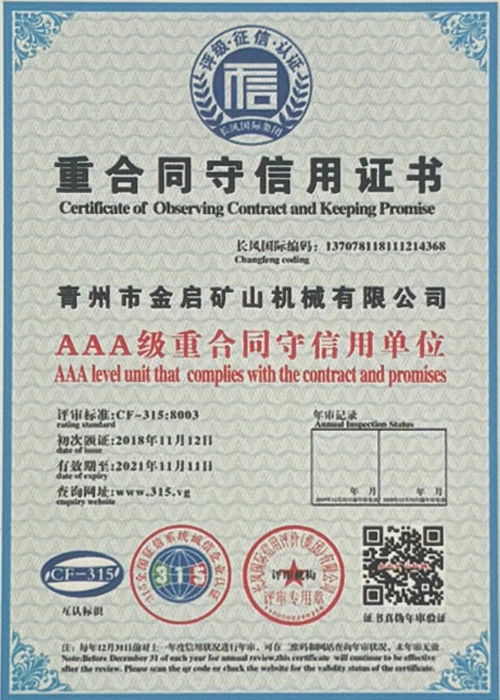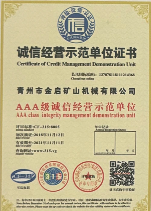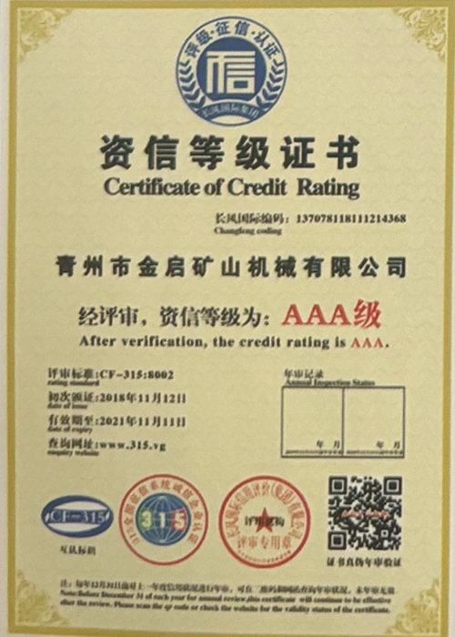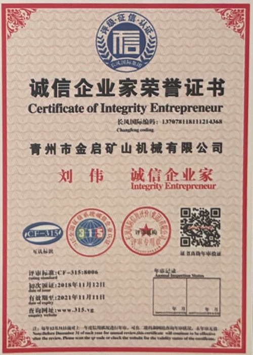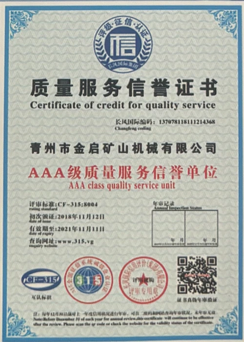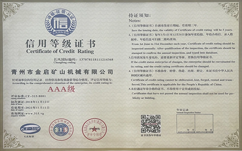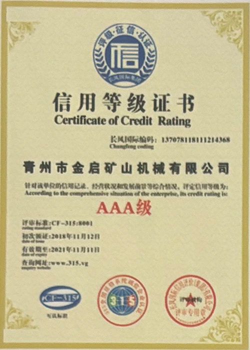 Cu ani de experiență aprofundată în industrie, bazându-se pe controlul strict al calității și inovația tehnologică continuă, compania a obținut o serie de calificări, certificări și certificate de brevet autorizate, inclusiv certificare ISO de management al calității, certificare a siguranței produselor miniere, precum și brevete multiple de invenție și brevete de modele de utilitate pentru optimizarea structurii echipamentelor și modernizarea tehnologiei de economisire a energiei, demonstrând rezistența tehnică a producției și garanția profundă a producției.