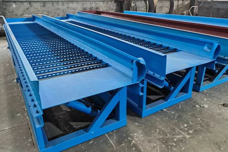 Masa de agitare: În funcție de scopurile de aplicare, mesele de agitare pot fi împărțite în mese de agitare cu granulație grosieră, mese de agitare cu granulație fină și mese de scuturare slime. Acestea au o mare precizie de separare și sunt adesea folosite pentru prelucrarea minereurilor de aur cu granulație fină.
