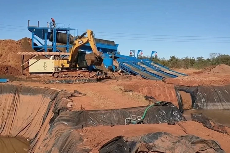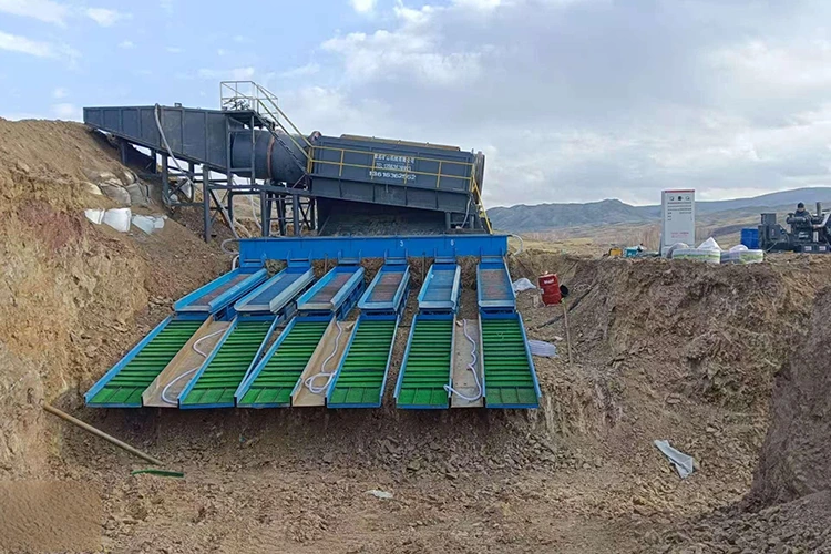Instalație mobilă de exploatare a aurului: este echipamentul principal pentru exploatarea aurului de tip placer pe teren, cu relocare flexibilă. Acesta integrează funcțiile întregului proces de alimentare, de screening și de separare a aurului. După ce pietrele sunt îndepărtate de sita trommel, suspensia de minereu este apoi separată de echipamente precum cutii de ecluză și concentratoare centrifuge.